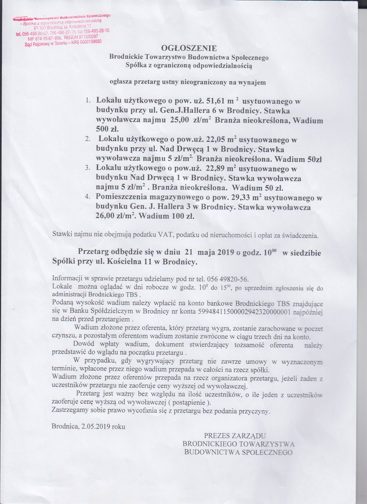 Przetarg ustny nieograniczony dotyczący wynajmu