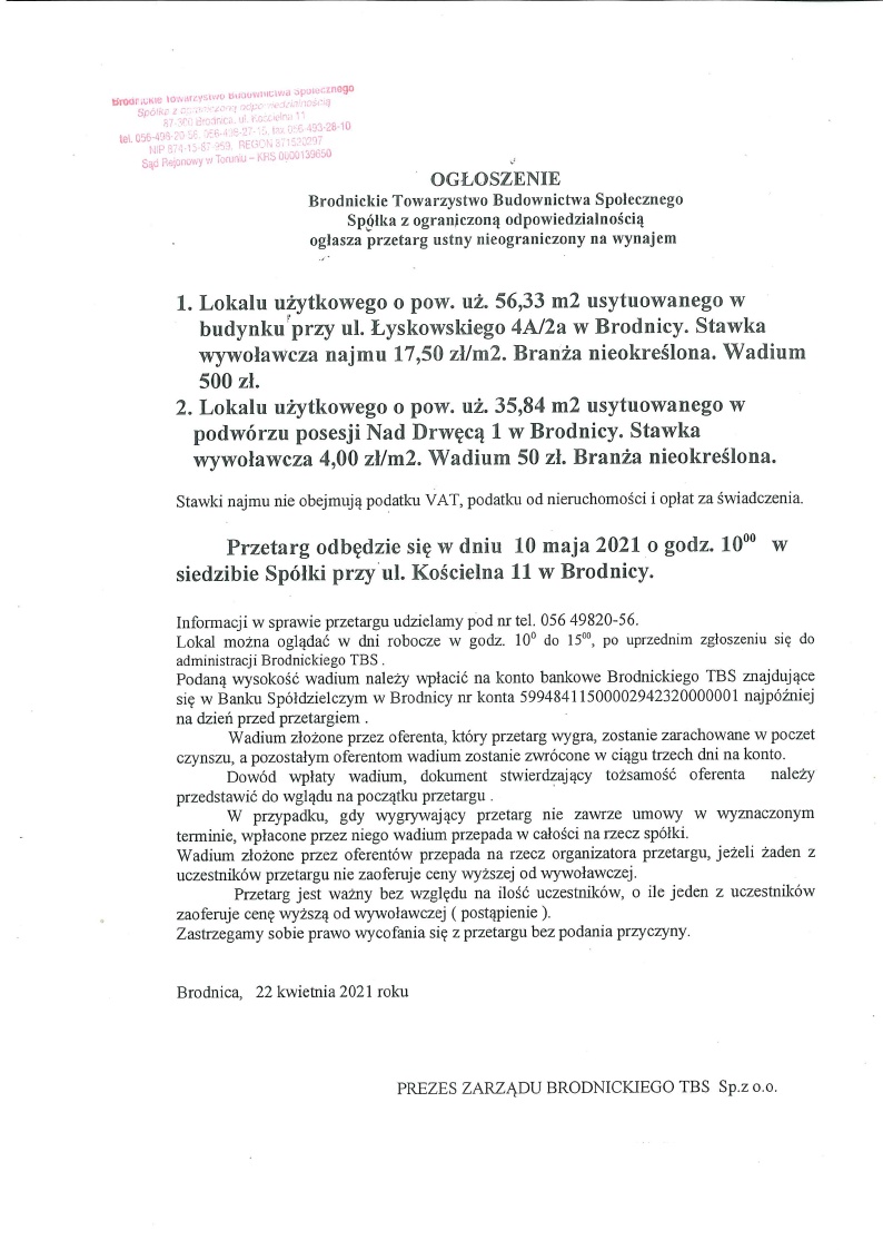 Przetarg ustny nieograniczony na wynajem